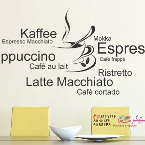چه چیزی میخواهید؟ کافه لاته، موکا، کاپوچینو، قهوه، ریسترتو، اسپرسو، لاته ماکیاتو یا برای جشن روز یک آیریش کافی؟ هیچ مشکلی نیست، با استیکر دیواری میتوانید همه آنها را روی دیوار بیاورید.