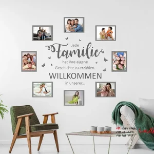 قاب عکس دیواری، جنبه تزئینی یک برچسب دیواری را با عملکرد عملی یک قاب عکس ترکیب میکند: طرحهای زیبای دیواری همزمان فضایی برای عکسهای شخصی شما فراهم میکنند.