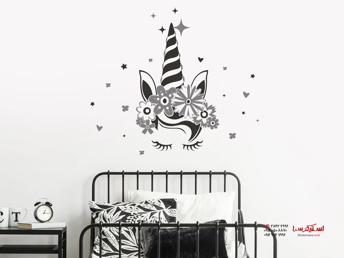 برچسب دیواری تک شاخ ما با گلها، به طور ویژهای زیبا و دلنشین است (زیرا ظرافت و زیبایی نیز از جمله قدرتهای برتر تک شاخ است) .