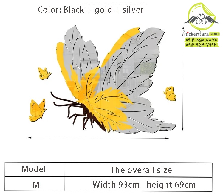 آینه دیواری پروانه سه بعدی خلاقانه اتاق پذیرایی اتاق نشیمن پس زمینه دکوراسیون دیوار اتاق خواب