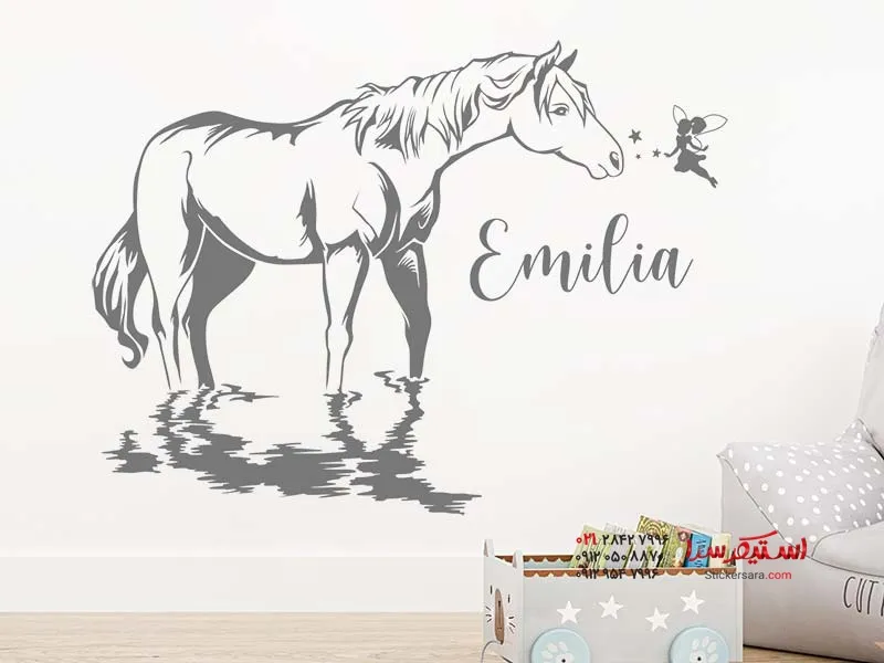 استیکر دیواری اسب با طرح پری و اسم دلخواه
