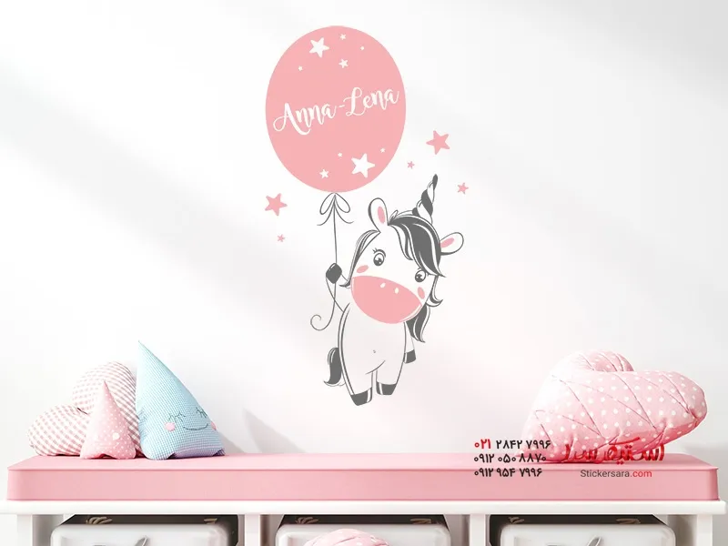 استیکر دیواری اسب تک شاخ به همراه بادکنک