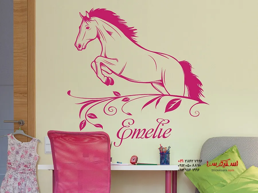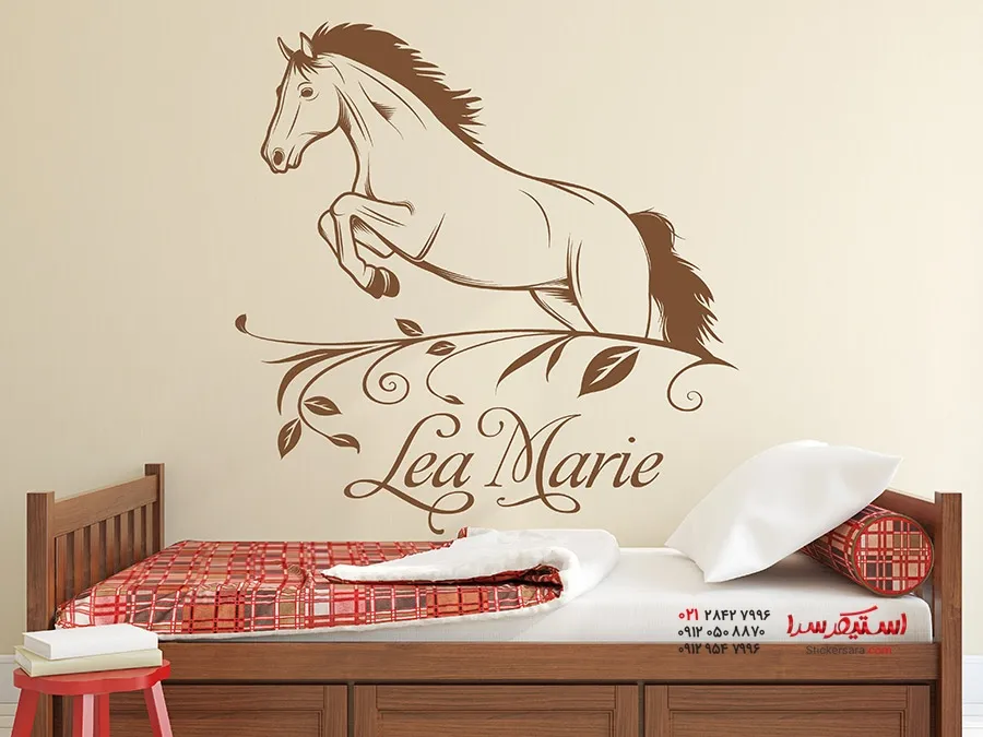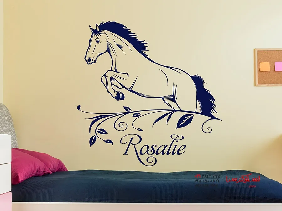 استیکر دیواری اسب در حال پرش با نام دلخواه شما