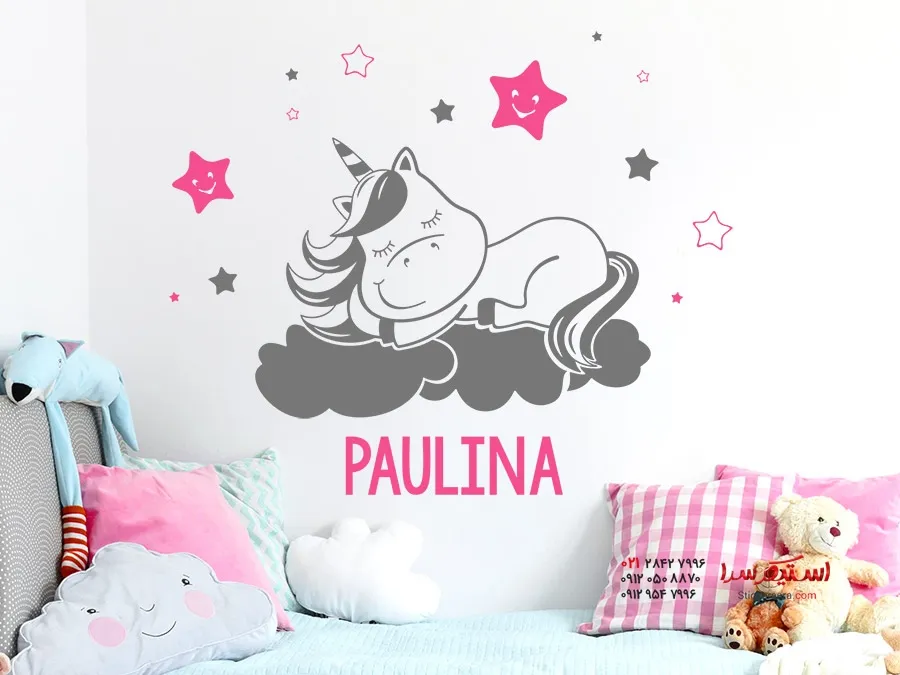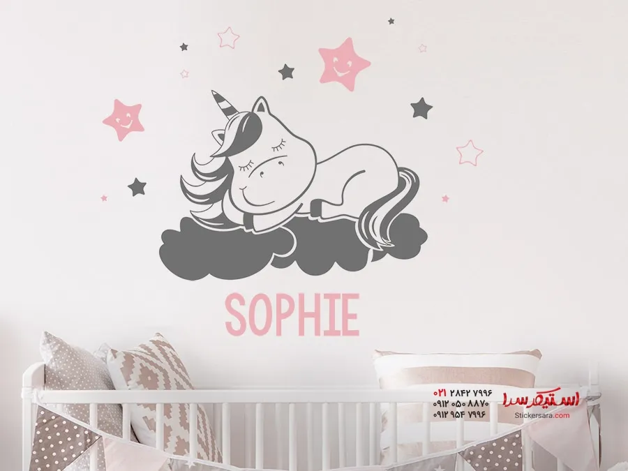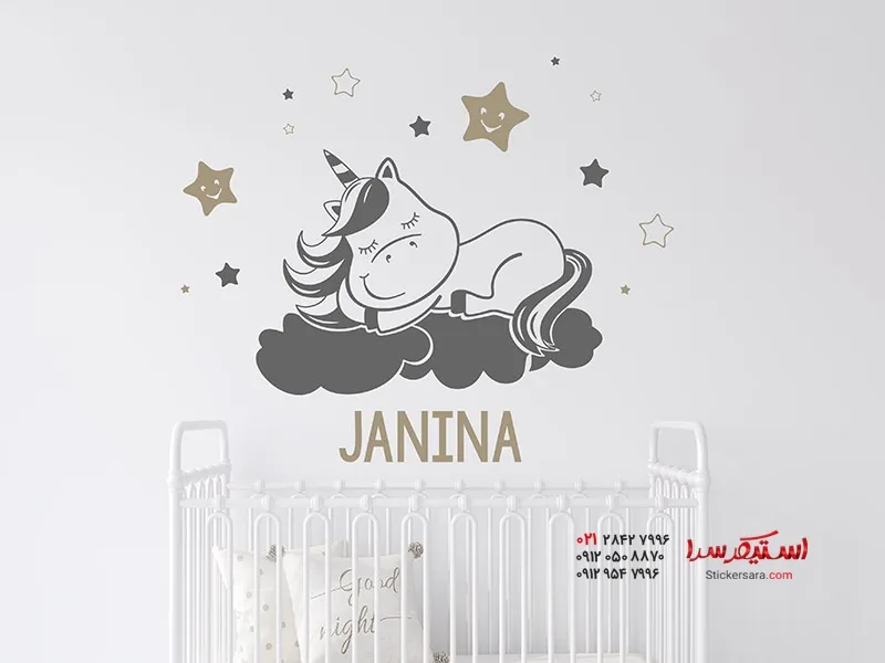 استیکر دیواری اسب شاخدار خوابیده با اسم