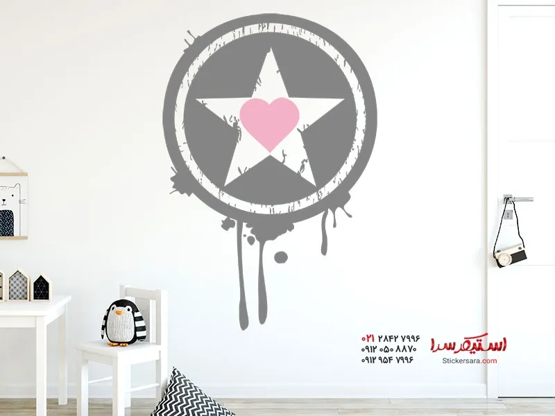 استیکر دیواری دایره ای با طرح ستاره و قلب