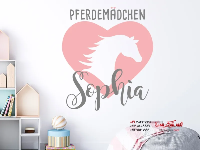 استیکر دیواری دختر اسب سوار با نام دلخواه