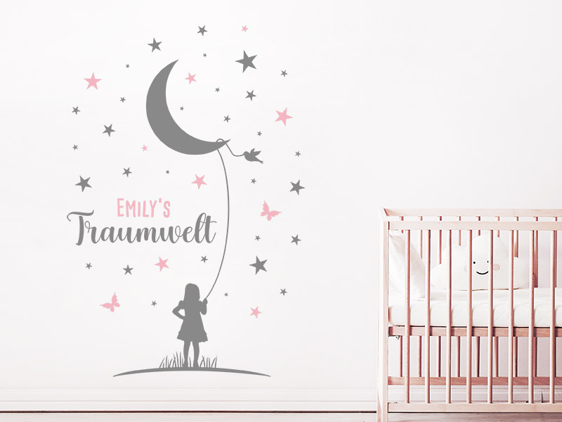 خانه ) استیکر دیواری دختر ماه با اسم دلخواه