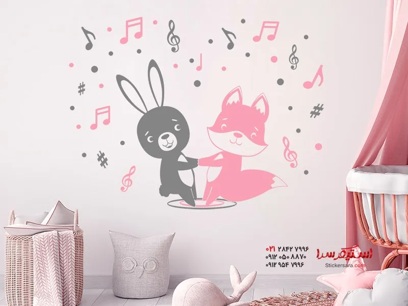 استیکر دیواری رقص خرگوش و روباه