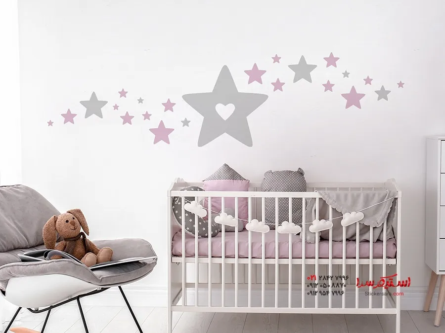 استیکر دیواری ماه با ستاره و اسم دلخواه1
