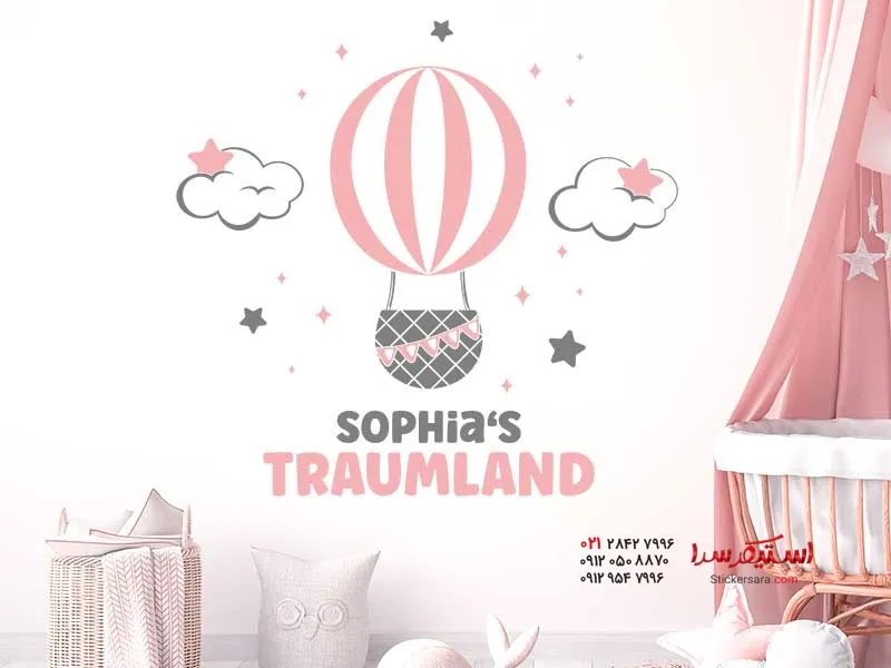 استیکر دیواری سرزمین رویاها با بادکنک و اسم