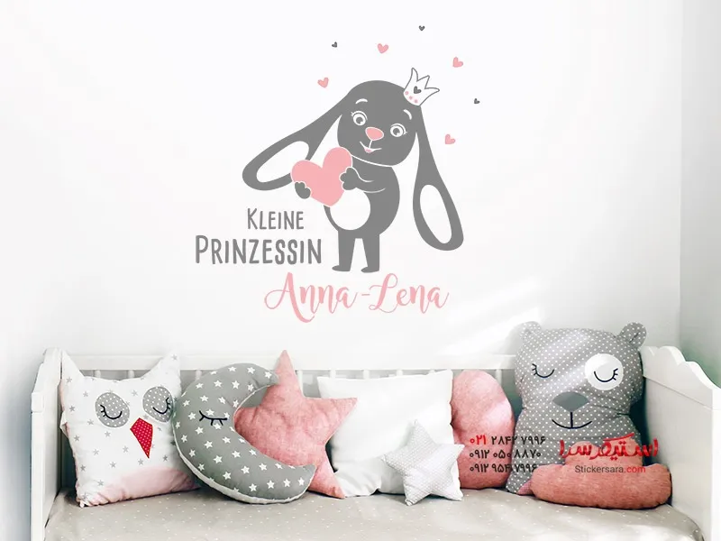 استیکر دیواری طرح پرنسس خرگوش با اسم دلخواه شما
