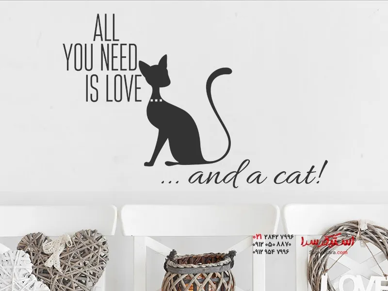 استیکر دیواری عشق و یک گربه