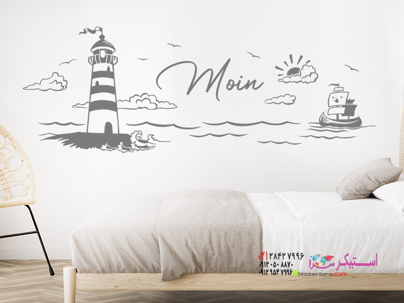 استیکر دیواری معین با طرح فانوس دریایی کنار دریا