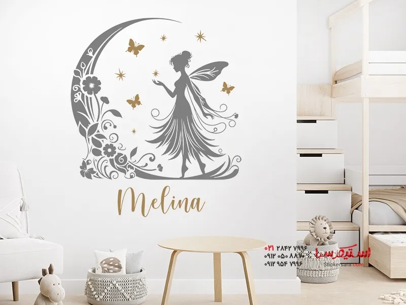 استیکر دیواری پری شکوفه ماه با نام دلخواه