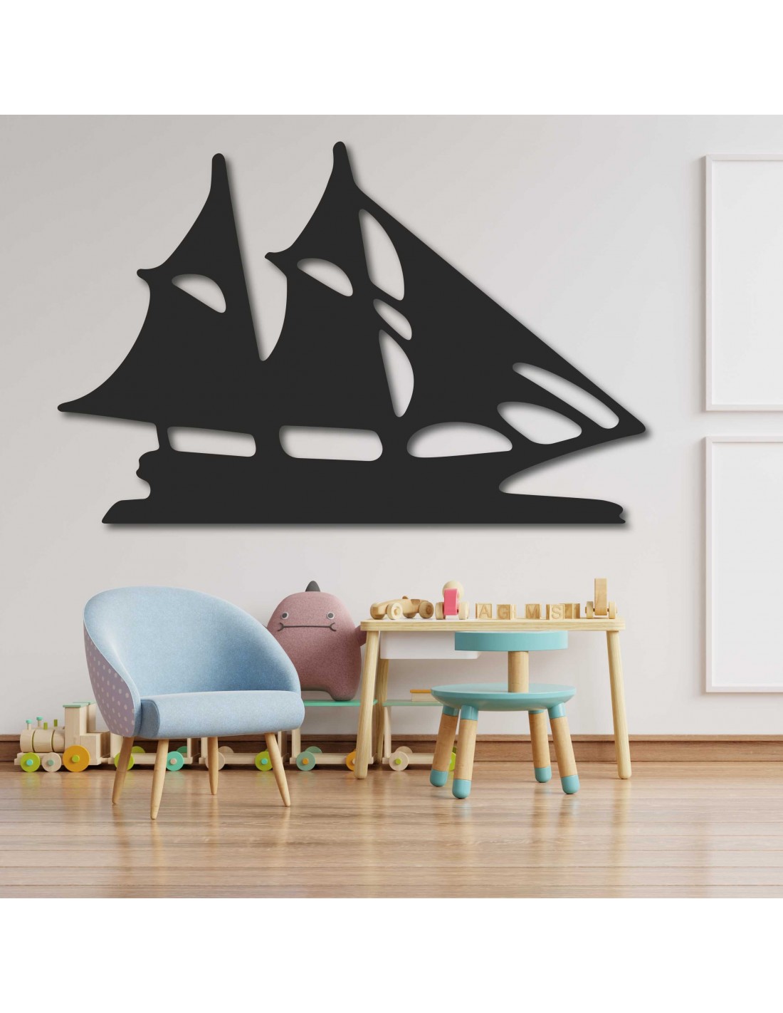استیکر دیوار قایق بادبانی چوبی