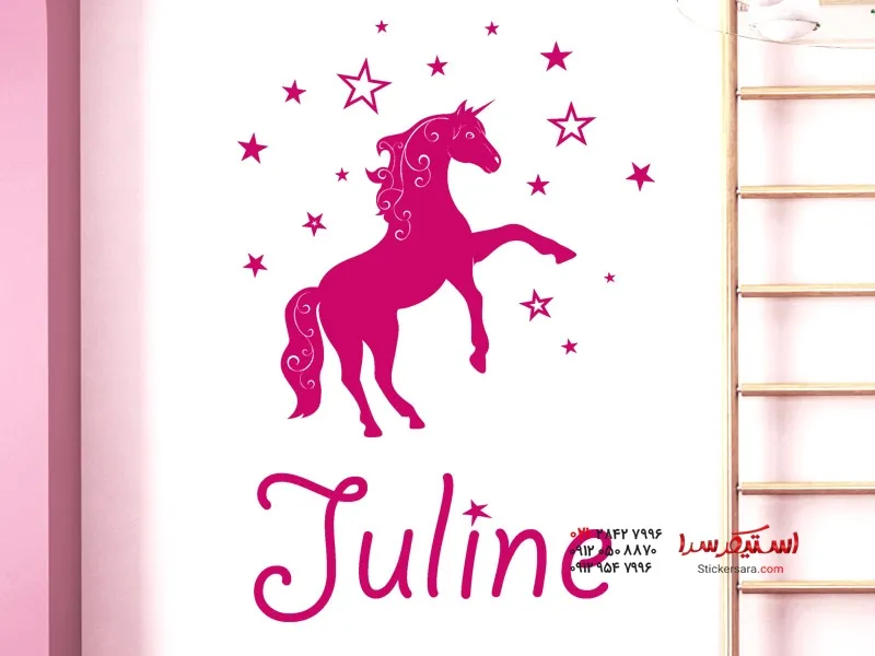 استیکر دیواری اسب تک شاخ با اسم دلخواه
