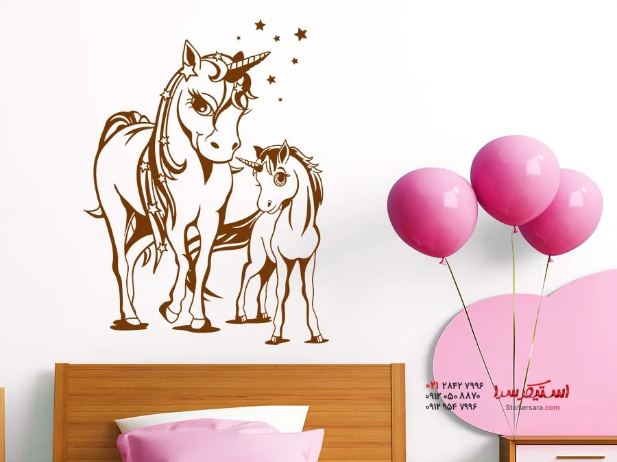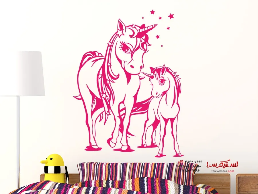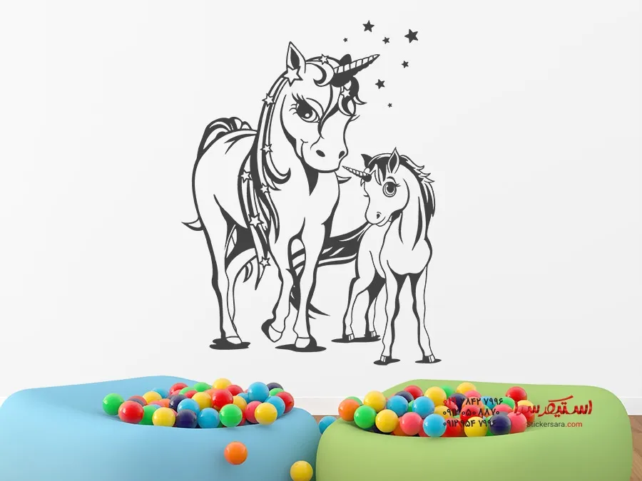 برچسب دیواری اسب شاخدار کوچولو با مامان