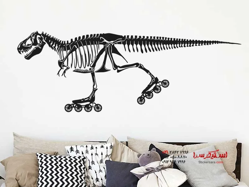 برچسب دیواری اسکلت دایناسور روی اسکیت