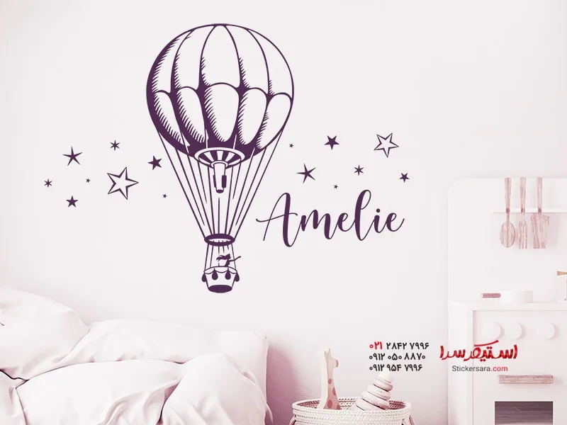 برچسب دیواری بادکنک هوای گرم با ستاره و نام