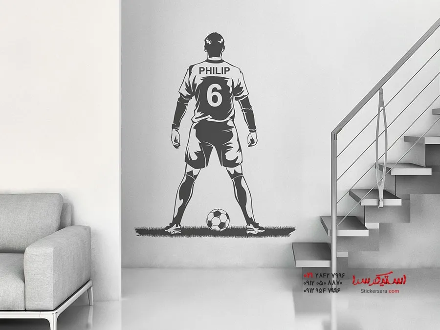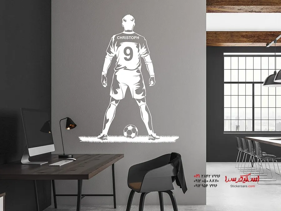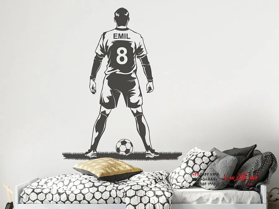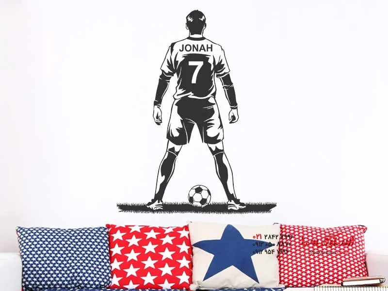 برچسب دیواری بازیکن فوتبال با نام و شماره