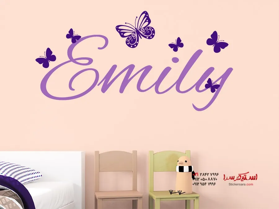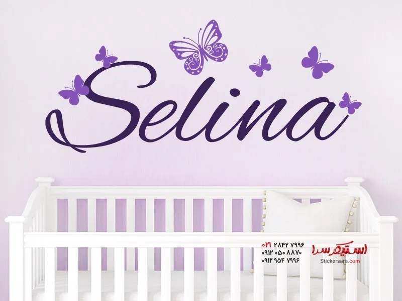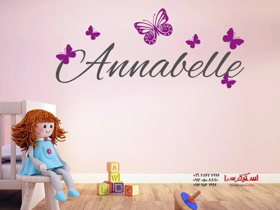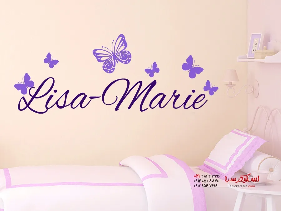 برچسب دیواری با اسم کودک و پروانه
