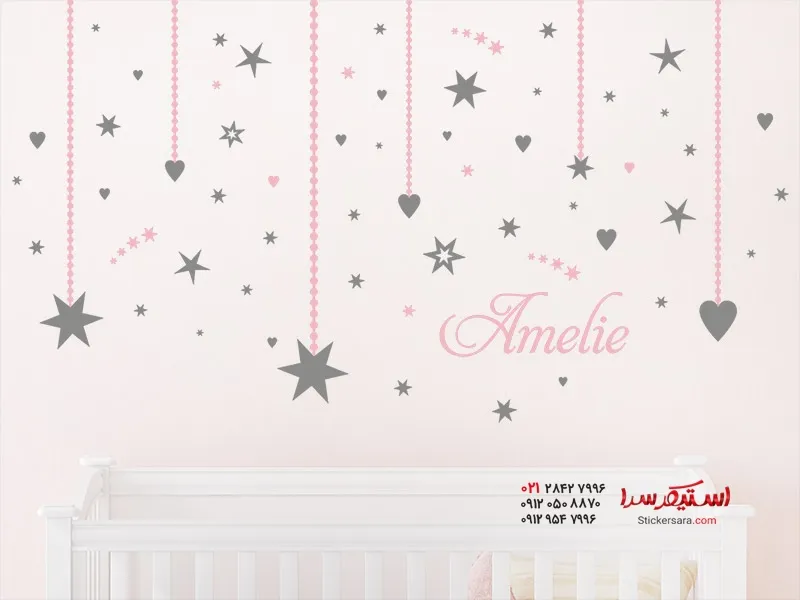 برچسب دیواری با ستاره و قلب و اسم