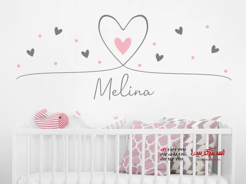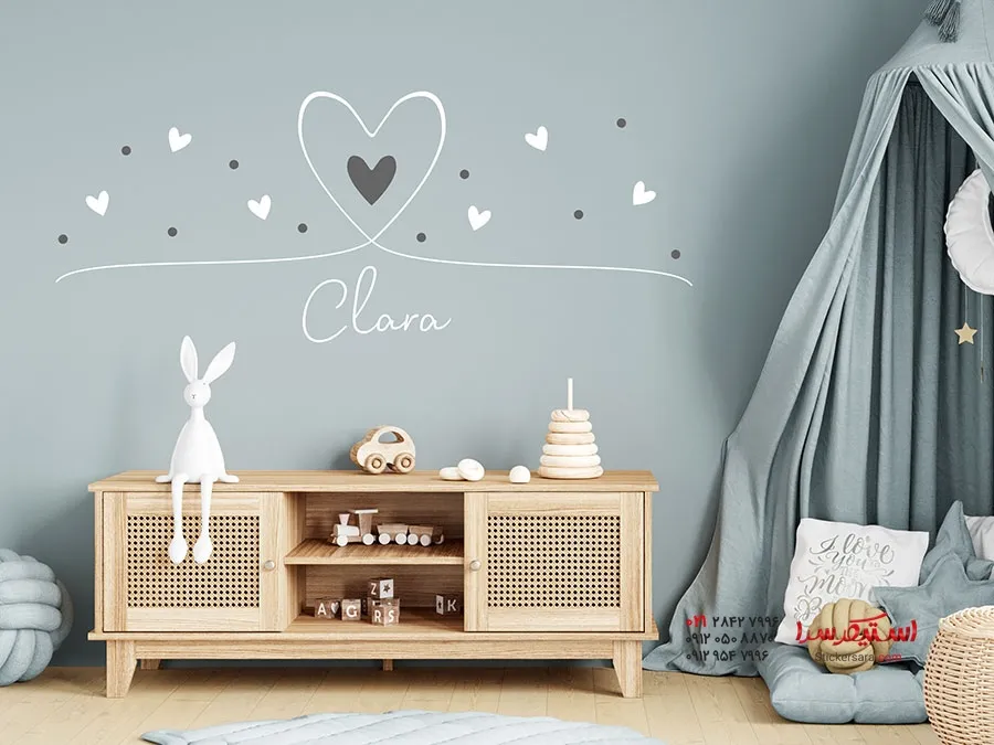 برچسب دیواری با طرح اسم، قلب و نقطه