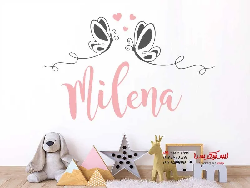 برچسب دیواری با طرح اسم، پروانه و قلب