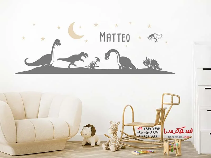 برچسب دیواری با طرح دایناسور به همراه ستاره و نام