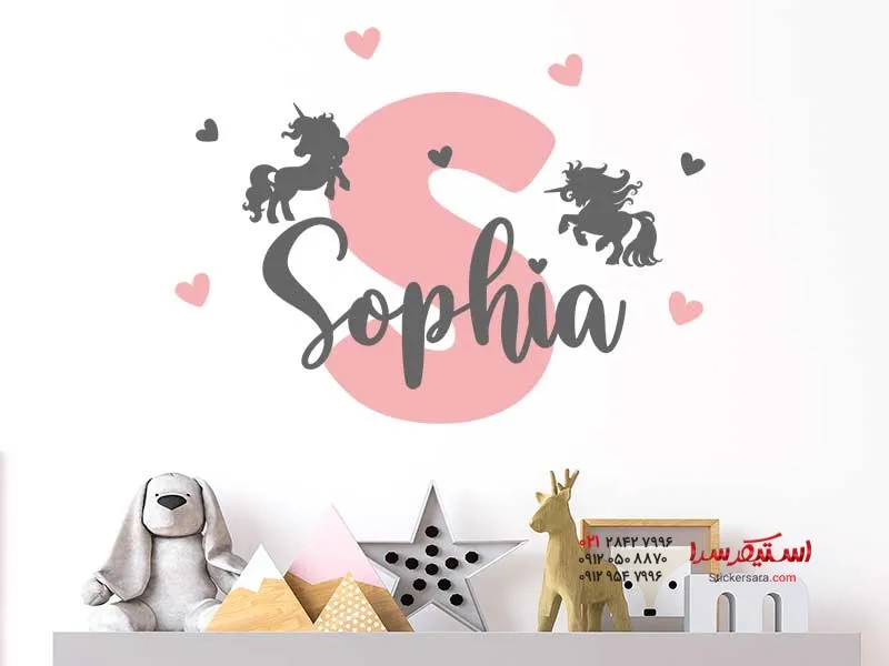 برچسب دیواری با نام، حرف و اسب تک شاخ