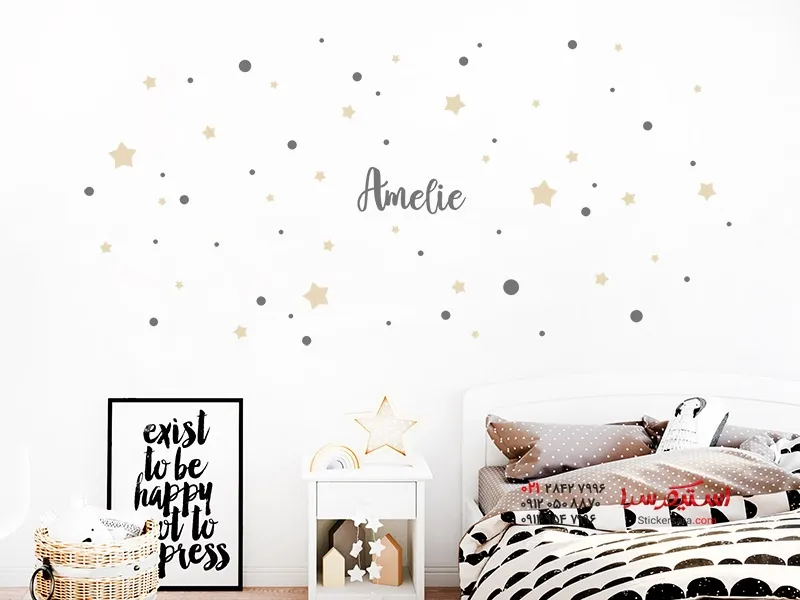 برچسب دیواری با نام، ستاره و نقطه