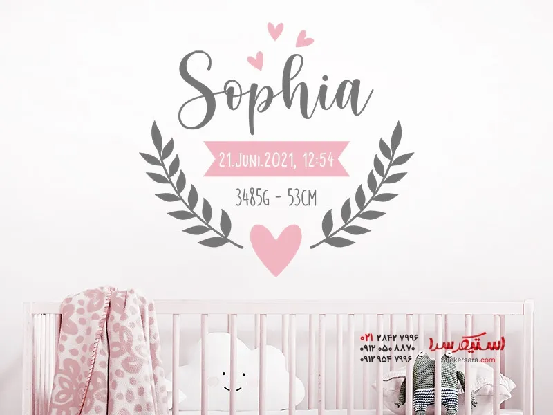 برچسب دیواری با نام، قلب و تاریخ شخصیسازیشده1