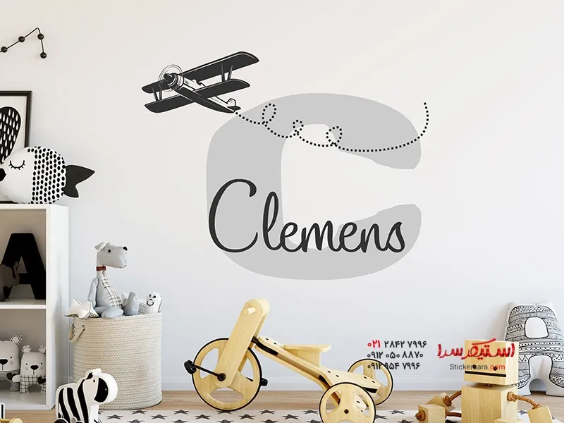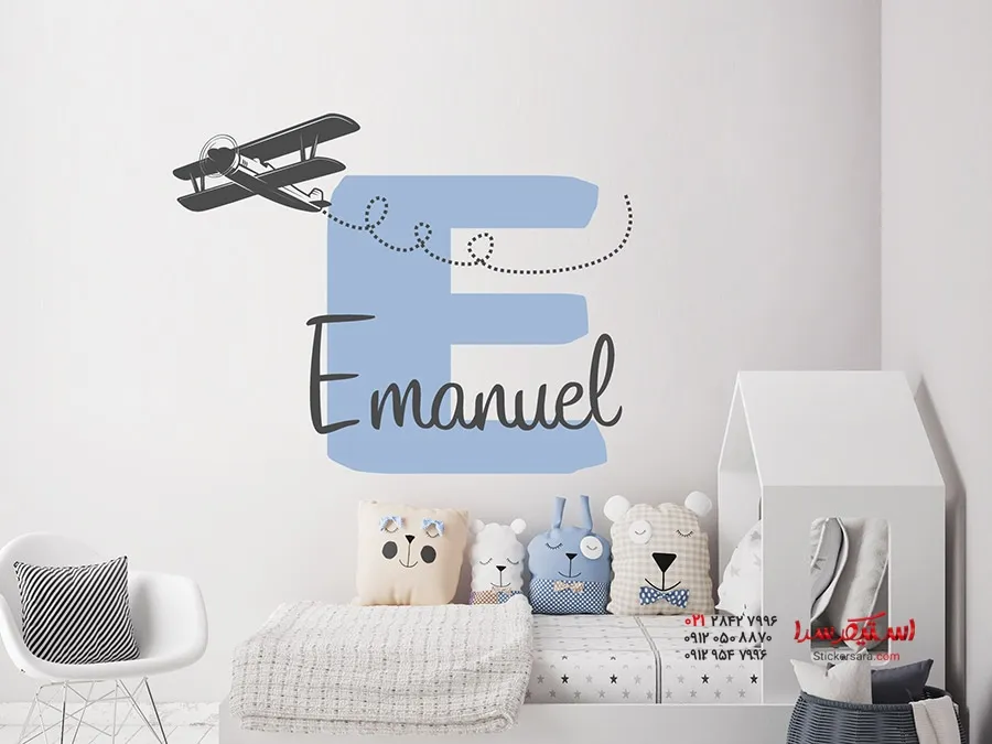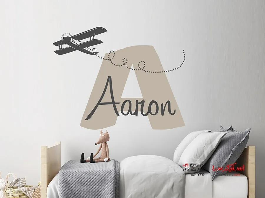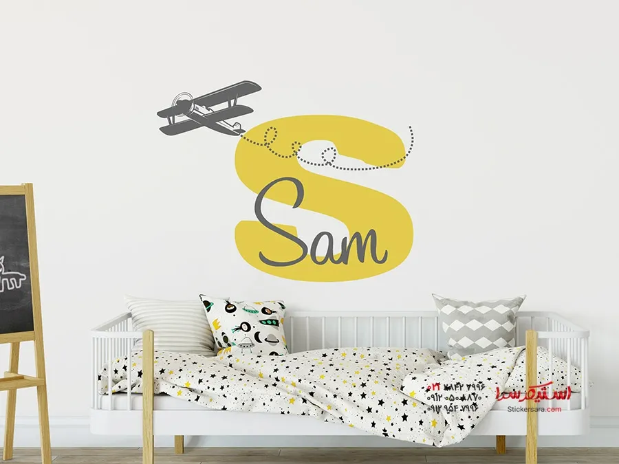 برچسب دیواری با نام و هواپیما
