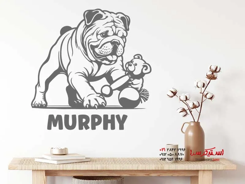 برچسب دیواری بولداگ انگلیسی قدیمی با نام
