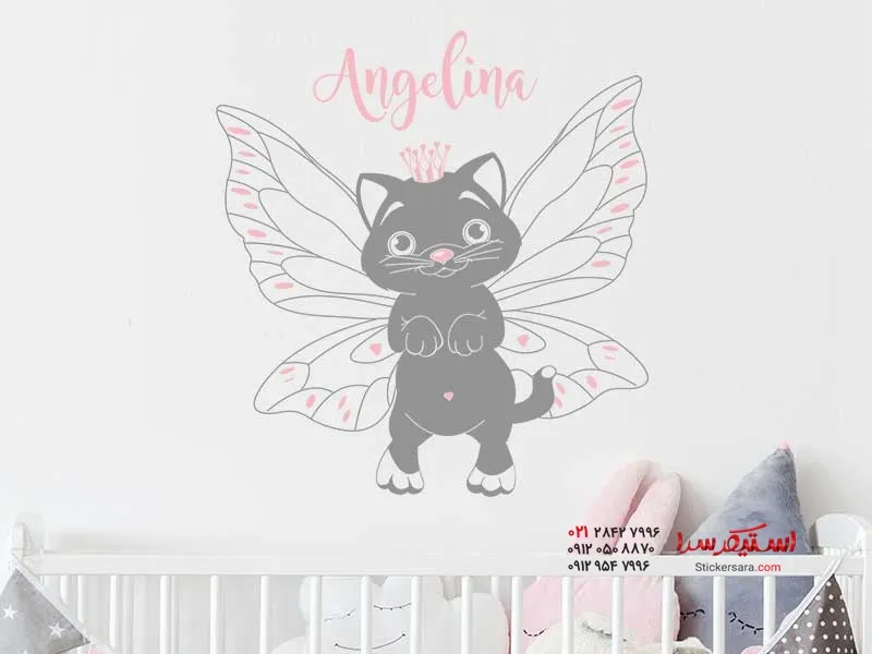 برچسب دیواری بچه گربه پری با نام دلخواه