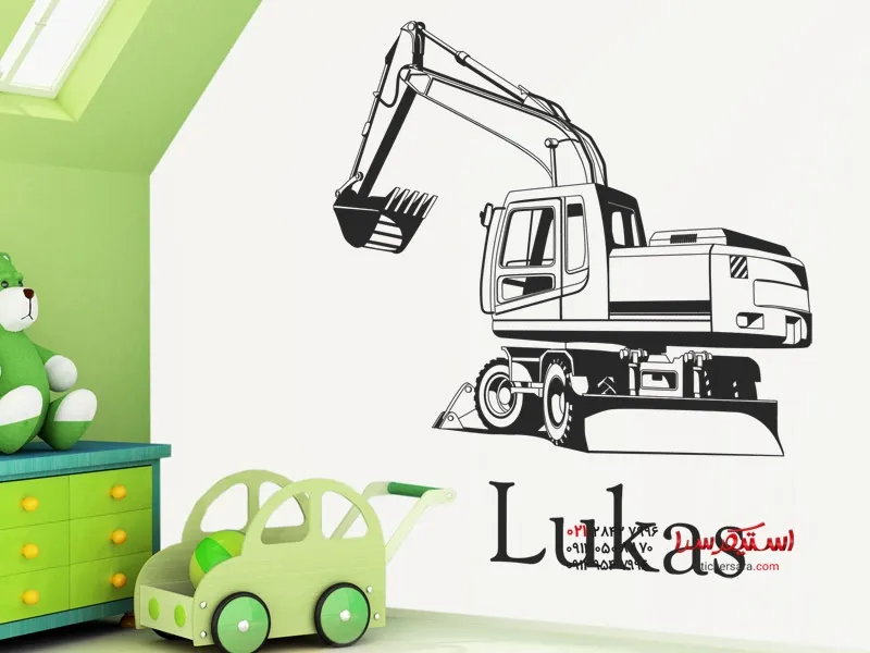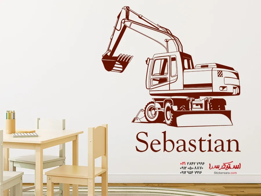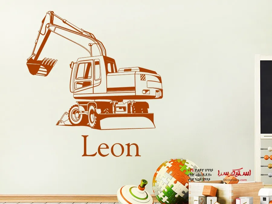 برچسب دیواری بیل مکانیکی با نام دلخواه