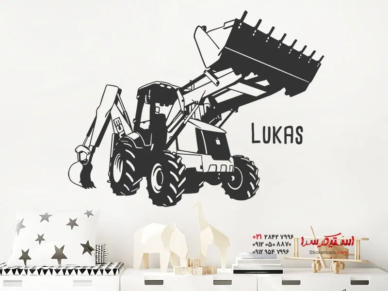 برچسب دیواری بیل مکانیکی با نام دلخواه