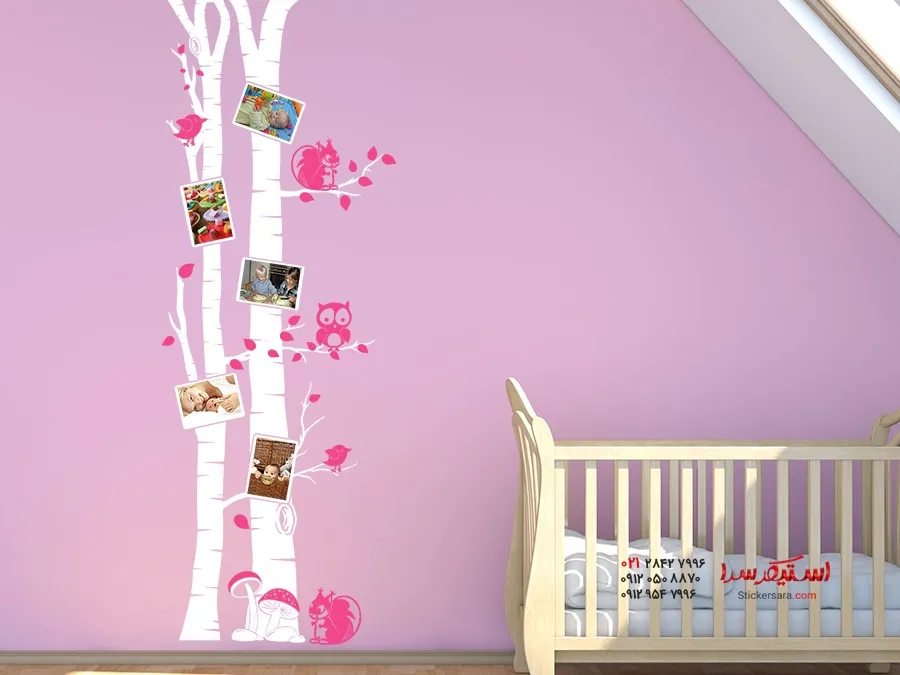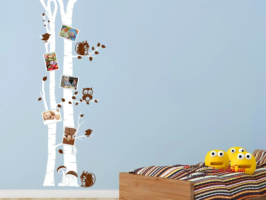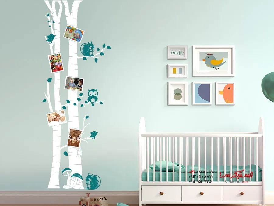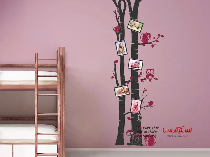 برچسب دیواری تنه درخت توس با قاب عکس