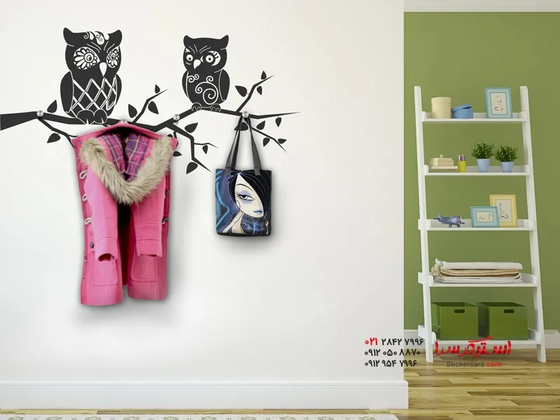خانه ) برچسب دیواری جا لباسی طرح جغد