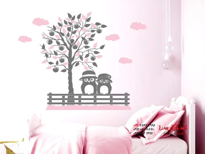 برچسب دیواری: جفت جغد زیر درخت سیب