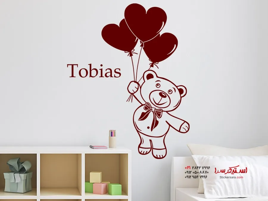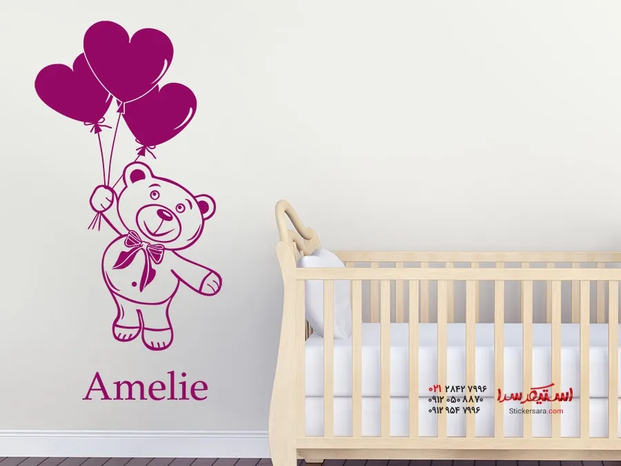 برچسب دیواری خرس عروسکی با نام دلخواه1