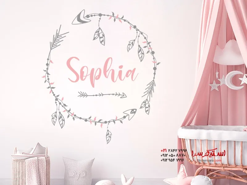 برچسب دیواری دایرهای بوهمی با نام دلخواه