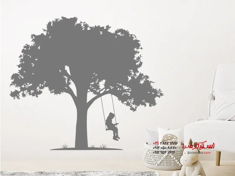 خانه ) برچسب دیواری درخت با دختر روی تاب