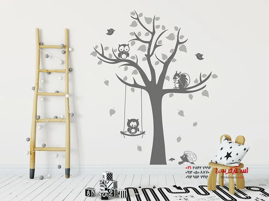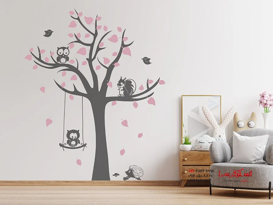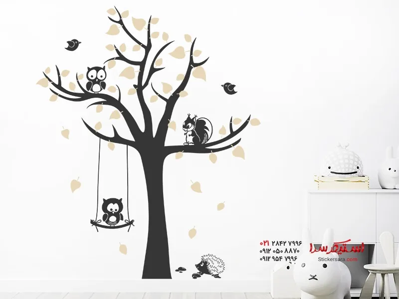 برچسب دیواری درخت با طرح حیوانات
