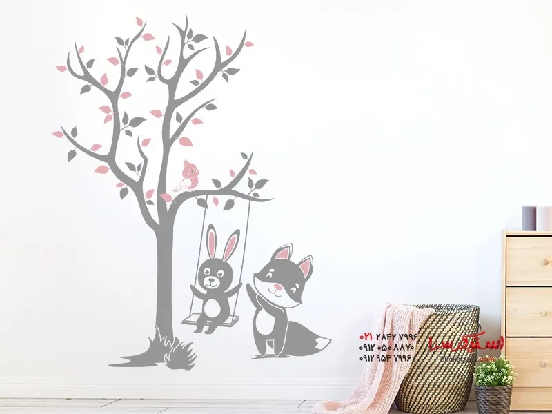 برچسب دیواری درخت با طرح روباه و خرگوش