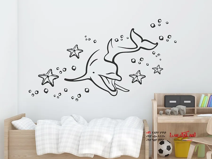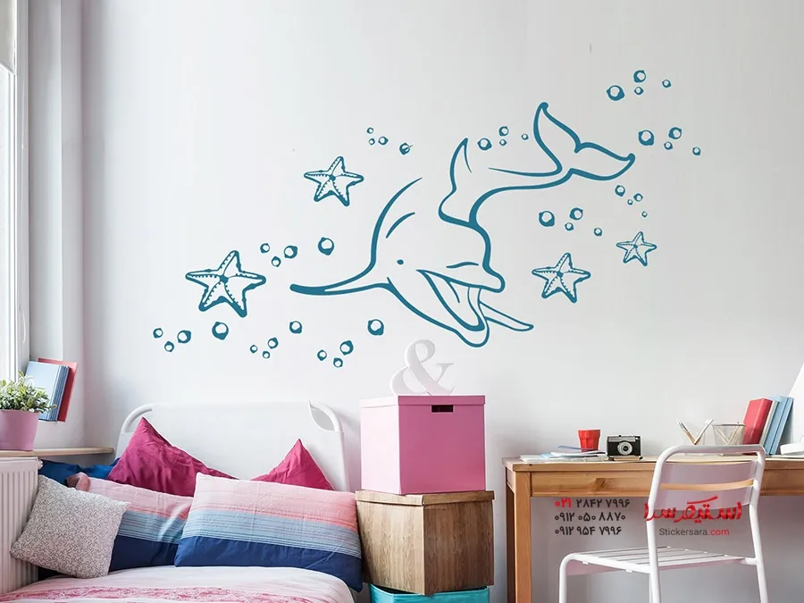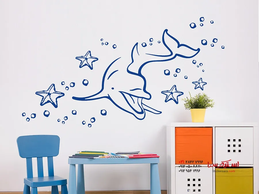 برچسب دیواری دنیای زیر آب با طرح دلفین