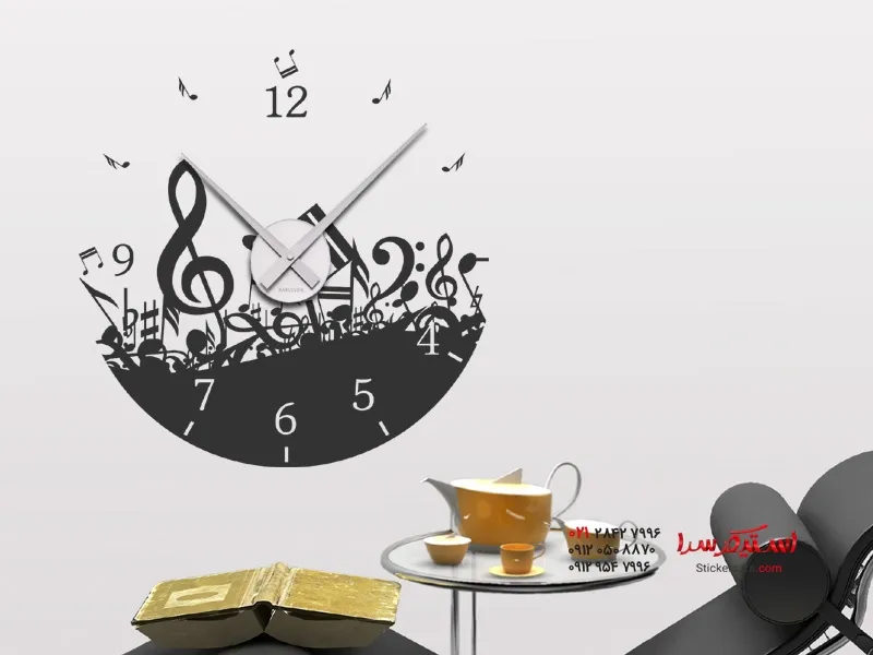 برچسب دیواری ساعت دیواری نت های موسیقی
