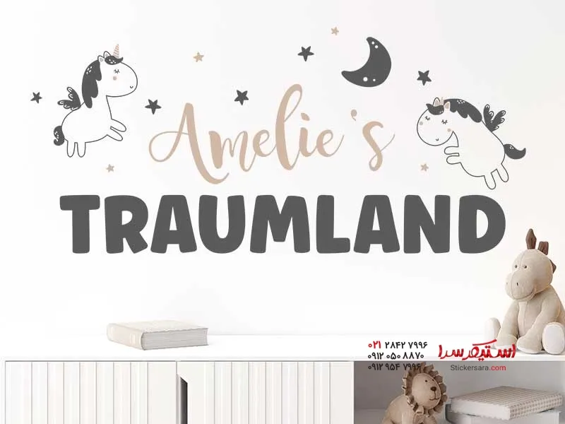 برچسب دیواری سرزمین رویاها با اسب شاخدار