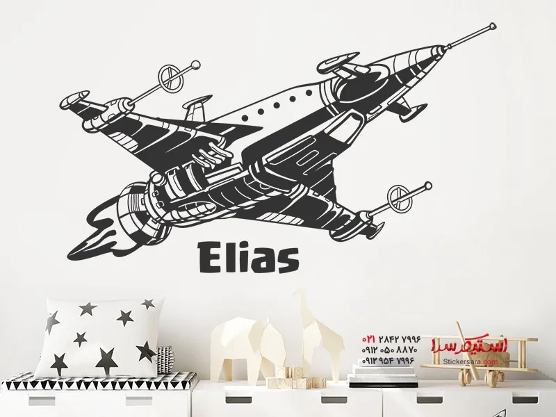 استیکر دیواری سفینه فضایی با نام دلخواه