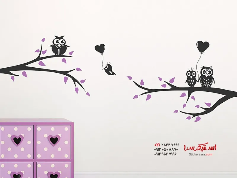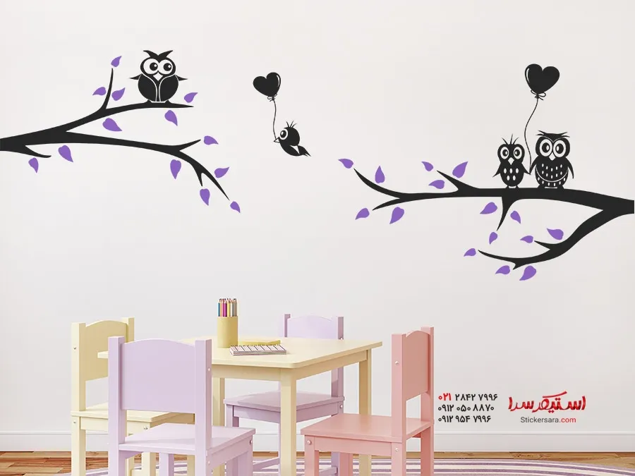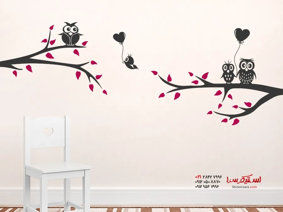 خانه ) برچسب دیواری شاخه با جغدهای زیبا